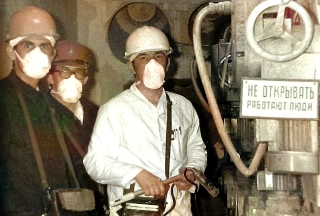 Разведка помещений 3 энергоблока ЧАЭС. В.Н. Тимошенко (справа)
